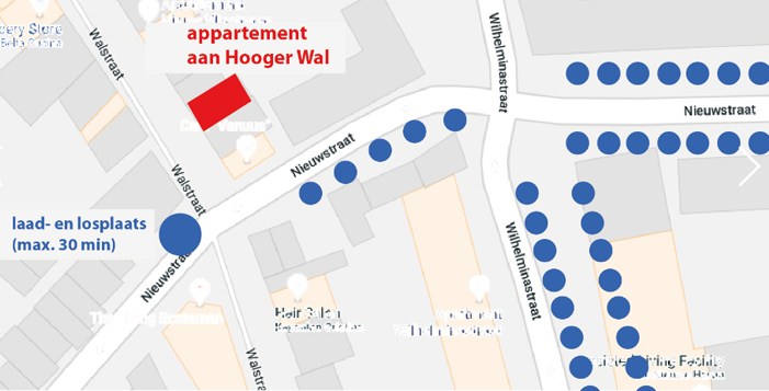 Eine Lizenzinhaberkarte ist im Mietpreis enthalten. Sie müssen dafür eine Anzahlung leisten. Sie können in unmittelbarer Nähe von Hooger Wal parken; Es gibt fast immer Platz. Bei geschäftigen Veranstaltungen können Sie Ihr Auto am Parkplatz Koningsweg parken (5 Minuten zu Fuß)