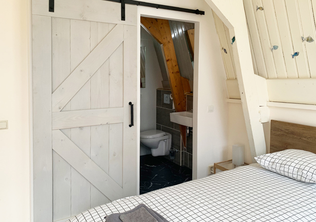 Op de tweede etage zijn de twee grote slaapkamers gesitueerd: de achter(ouder)slaapkamer is uitgerust met een 2 persoonsbed (180 x 200) met twee losse matrasssen, een 3-deurs garderobekast, nachtkastjes en een ladencommode. In de andere slaapkamer staan twee eenpersoonsbedden (90 x 200), een 3-deurs garderobekast, nachtkastjes en een ladencommode.